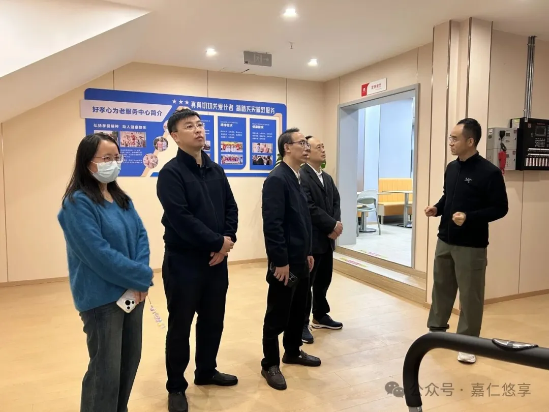 在熊总的引导下,张庆川局长、刘宗彪局长一行先后参观了中心的康复理疗区、棋牌娱乐区、心理咨询室、日间照料区、悠享学堂、幸福食堂、智慧养老及适老化产品区等核心功能区。参观过程中,领导们细致察看了中心的设施设备和配置。